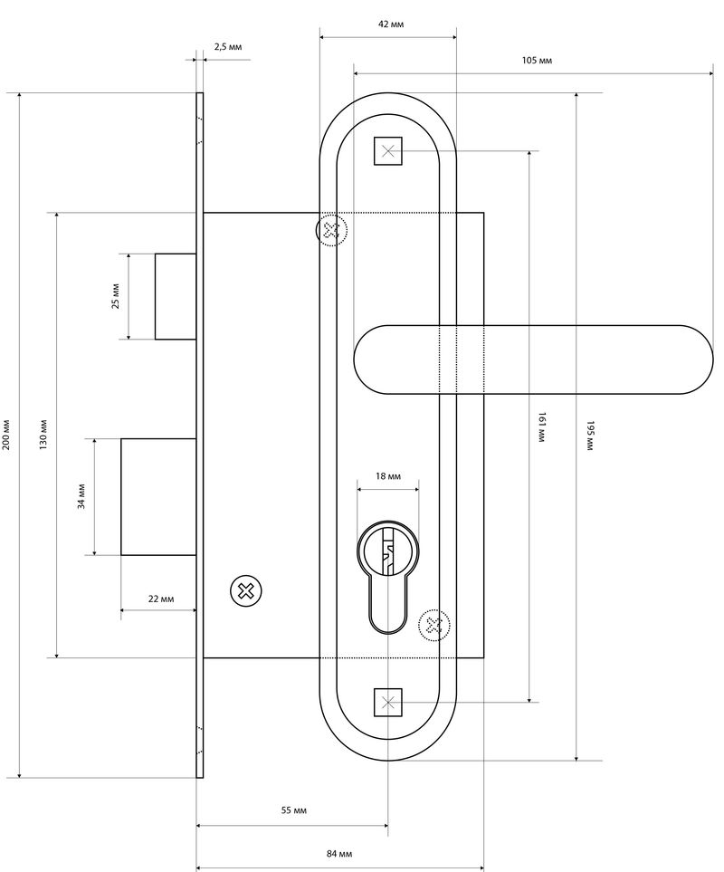 Предназначен для установки в деревянные двери толщиной 40-50мм, правого и левого открывания.