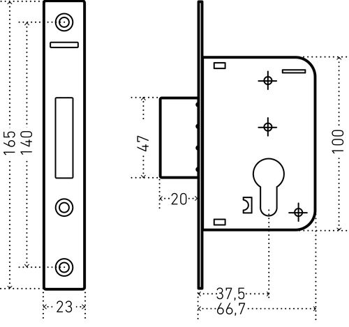 Замок врезной цилиндровый, без механизма секрета. Предназначен для установки в деревянные двери. Корпус - стальной покрыт серой эмалью, прямоугольный ригель, вылет 21мм. Удаление ключевого отверстия 40мм. Ширина торцевой планки 23мм, гальваническое покрытие, цвет - латунь.