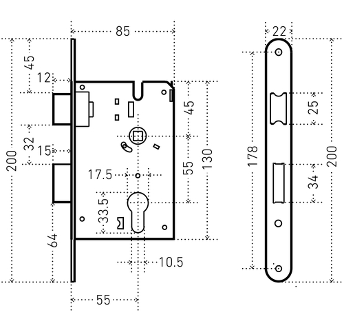 Врезной замок с ручками. Предназначен для установки в деревянные двери толщиной до 40 мм. Прямоугольный ригель, вылет 24 мм. Универсальная защелка. Корпус из оцинкованной стали. Межосевое расстояние - 55 мм. Удаление ключевого отверстия - 55 мм. Материал ручек — алюминиевый сплав , накладки — сталь. Многослойное гальваническое покрытие. Комплектация: замок, ручки, ответная планка, винтовые стяжки,цилиндровый механизм 70мм.Гарантийный срок эксплуатации — 3 года.