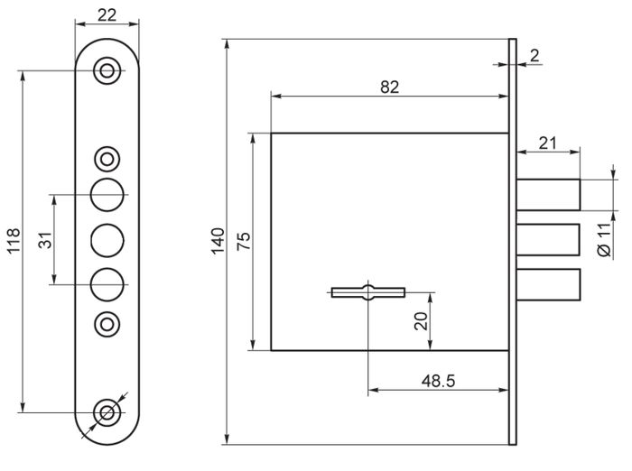 Предназначен для установки в деревянные двери толщиной до 45мм, правого и левого открывания. Три стальных ригеля круглого сечения диаметром 11 мм, вылет 21мм. Стальной корпус, покрыт гальваническим покрытием. Удаление ключевого отверстия 50мм. Комплектация: замок, 3 ключа, ответная планка, накладки, шурупы для крепления.
