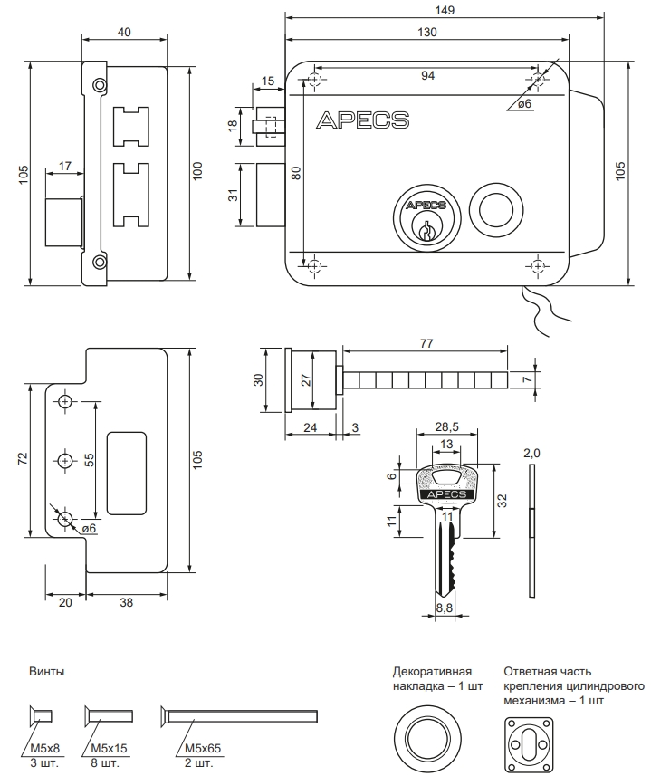 | Количество ключей | 5 шт |
