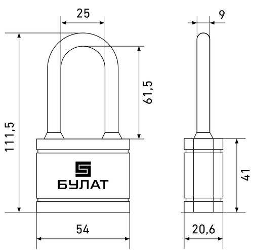 Замок навесной «БУЛАТ» предназначен для запирания распределительных щитов, почтовых ящиков и прочих помещений. Замок запирается автоматически при нажатии на скобу без использования ключа. Замок обладает длительным сроком эксплуатации. Гарантийный срок 5 лет с момента продажи через розничную сеть. Размер корпуса: 54х41х20,6мм Диаметр дужки: 9 мм Проем дужки по высоте: 61,5 мм Проем дужки по ширине: 25 мм